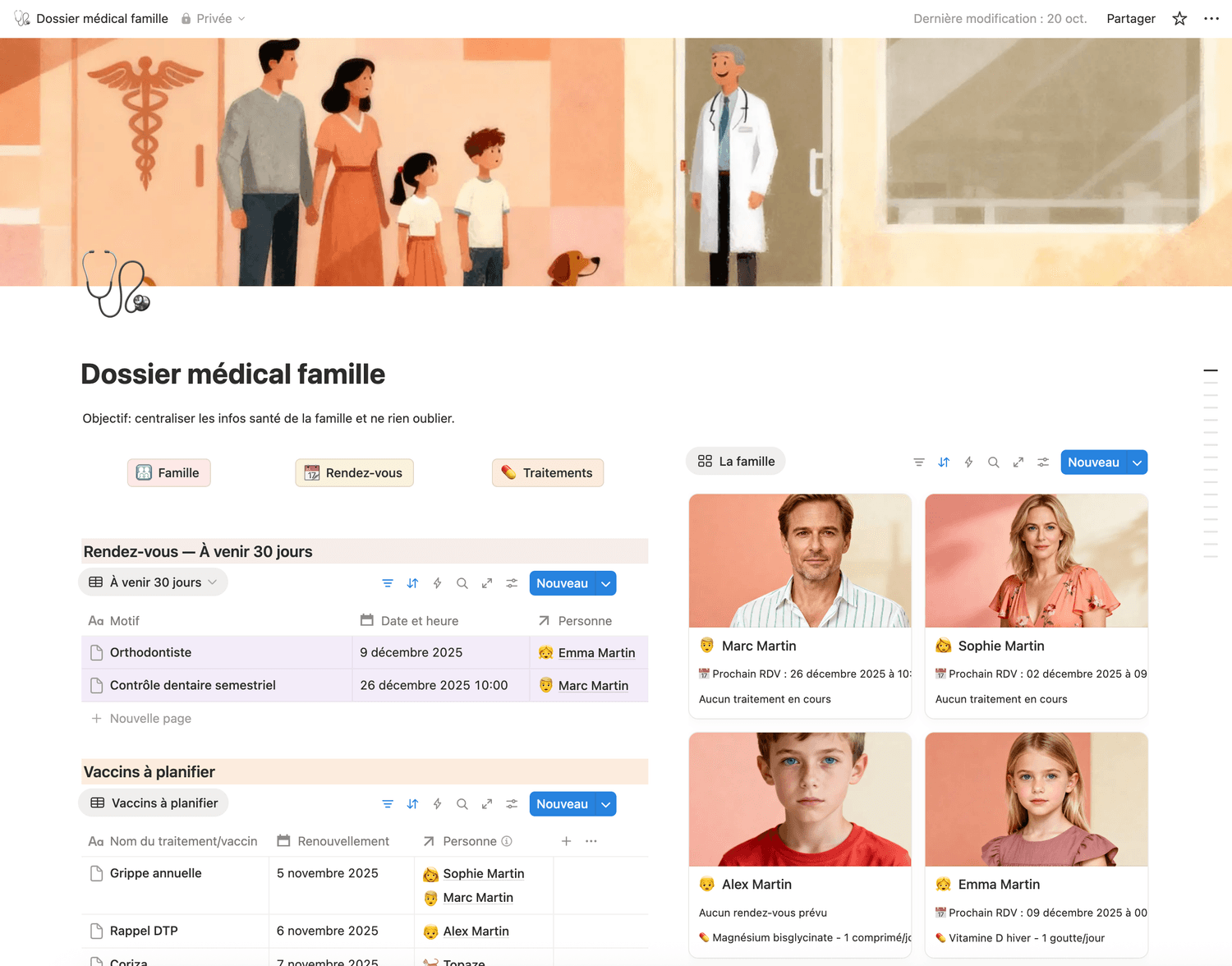 Organisation famille (routines, menus, santé, activités…)